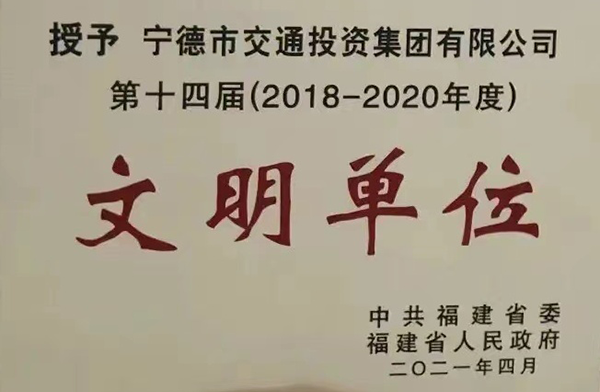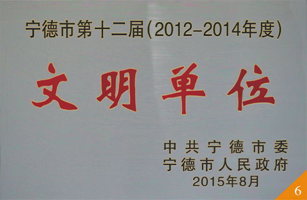 情色网 荣获宁德市第十二届(2012-2014年度)文明单位称号